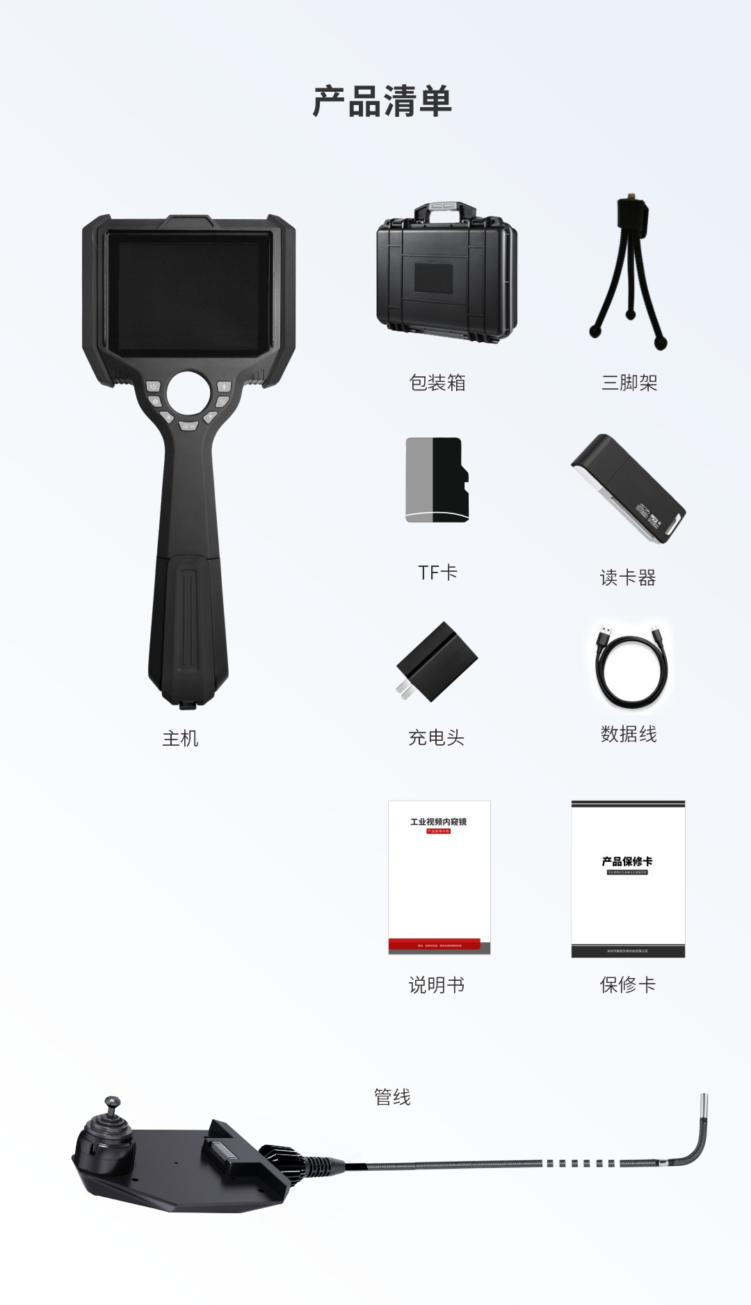 優勢特點:紫白雙光源;360°全方位擺頭;百萬高清攝像頭;工業探傷檢測專用
